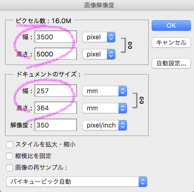 PhotoshopでカンバスサイズB4で描いた絵をレイヤー統合してB1に